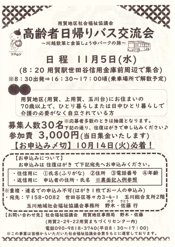 高齢者日帰りバス交流会 用賀地区社会福祉協議会