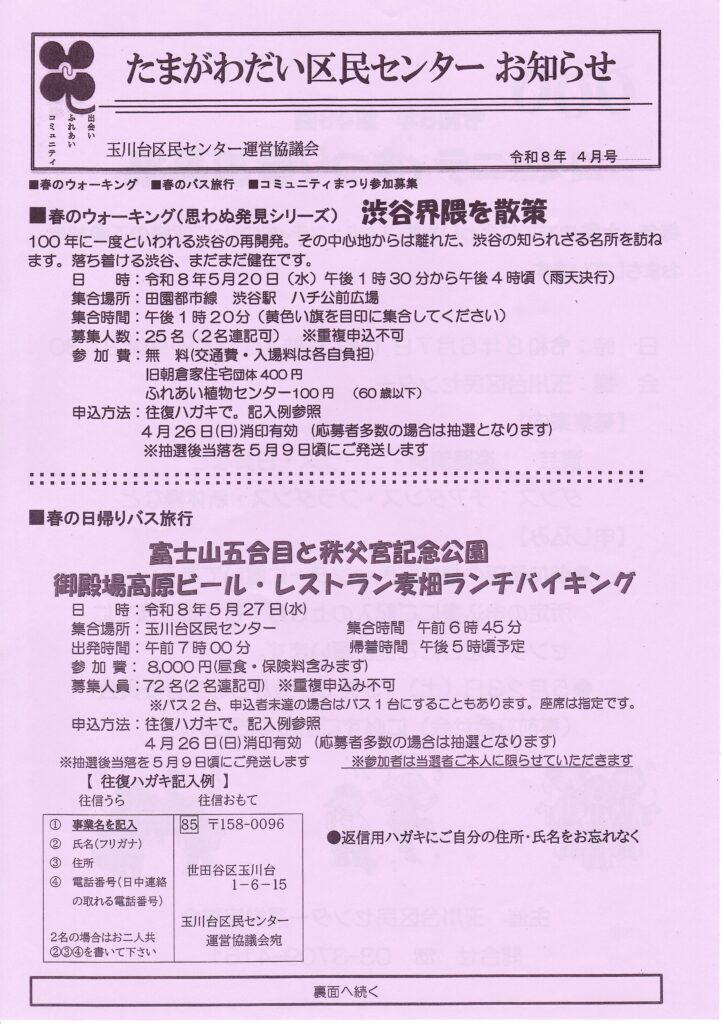 たまがわだい区民センター お知らせ 4月号