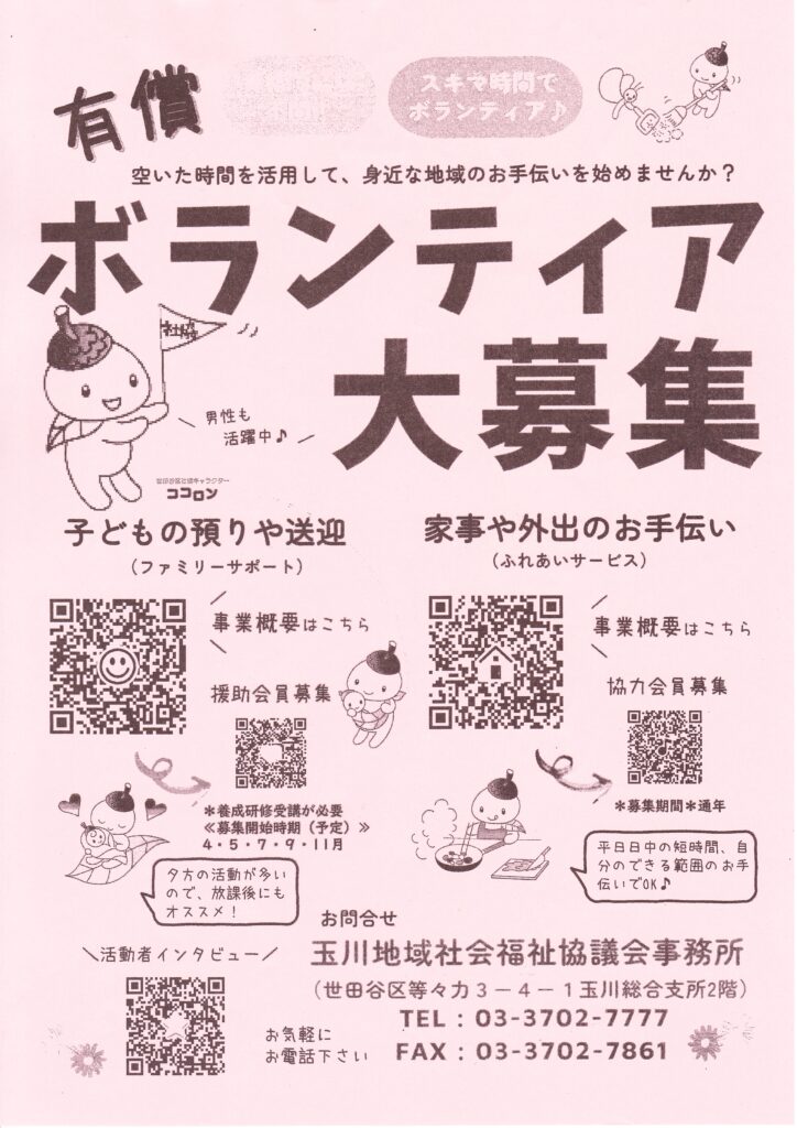 有償ボランティア大募集 玉川地域社会福祉協議会事務所